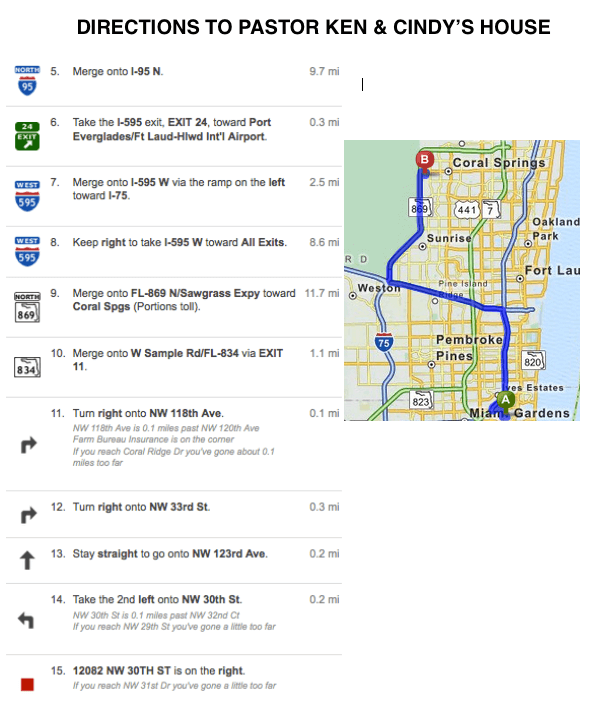 Map and directions to Ken and Cindy’s house.