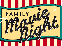 Family Movie Night sign with striped background.